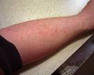 No part of the body is immune to this problem. For example, an individual can get an entire body rash or it can be more localized. Typical target areas are: the inside of arms, underarms, leg joints, face, under breasts, shins, etc.