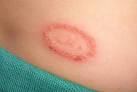 Ringworm of the body (tinea corporis): Ringworm of the body (tinea corpus) is a fungal infection that appears as itchy, red, scaly, slightly raised, expanding rings on the body. The ring grows outward as the infection spreads, and the center area becomes less actively infected. Ringworm is contagious. You can catch the infection through skin-to-skin contact with an infected person or by coming into close contact with contaminated objects, such as unwashed clothing or bedding. Treatment usually requires prescription antifungal medication. A tinea infection in the groin is called jock itch (tinea cruris), and a tinea infection of the foot is called athlete's foot (tinea pedis).